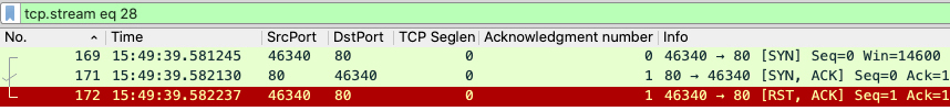 看来,我们还需要进一步打磨一下过滤条件,把握手阶段的RST给排除。要做到这一点,首先要搞清楚:什么是握手阶段的RST的特征呢?