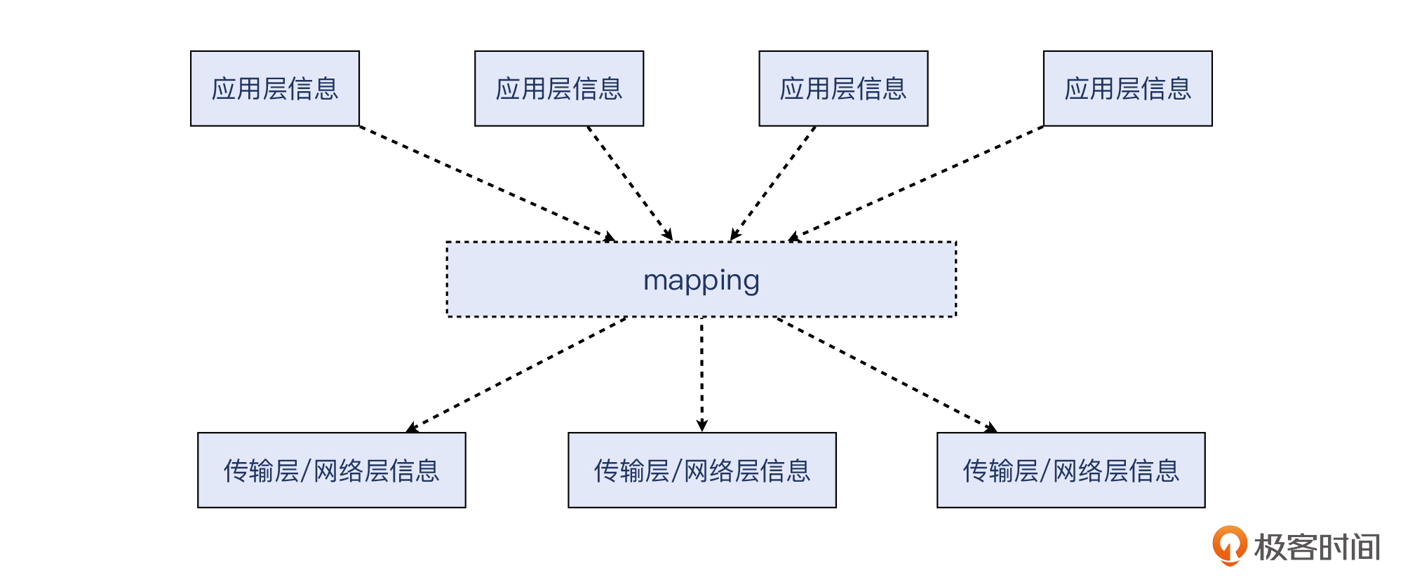 或者说,我们需要完成一件有时候比较有挑战的事情:把应用层的信息,跟位于它下面的传输层和网络层的信息联系起来。