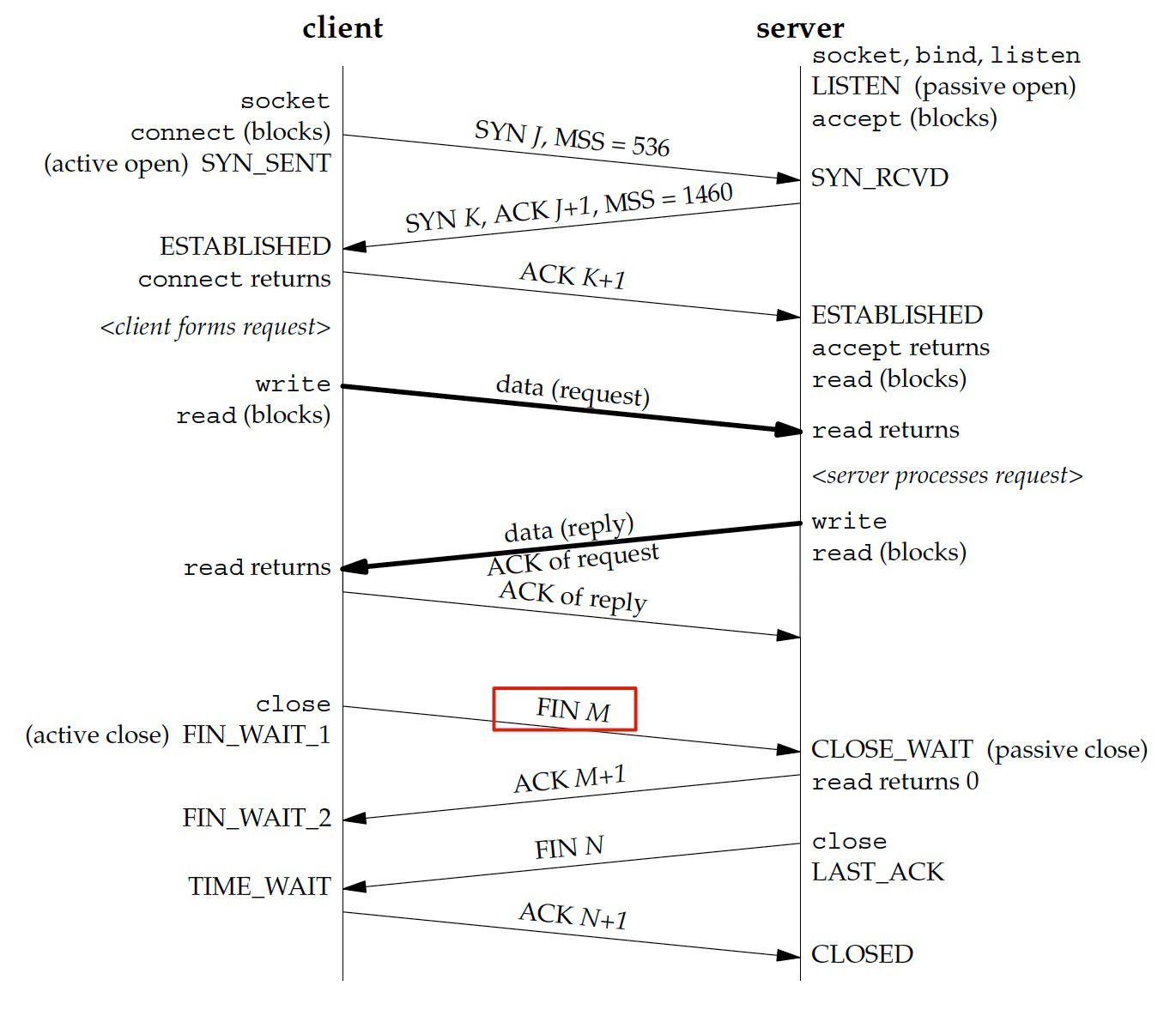 Stevens当然清楚双方都可以发起挥手,他只是为了突出重点,就没有把多种情况都画到同一张图里,因为这张图的重点是把TCP连接状态的变迁展示清楚,而不是要突出“谁可以发起挥手”这个细节。
