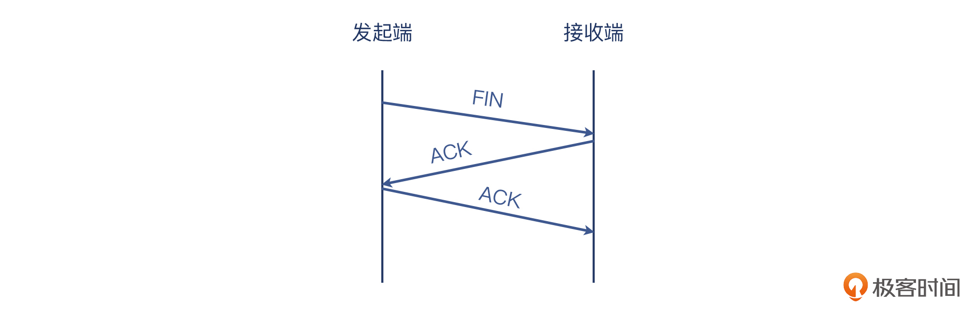我在图上没有用“客户端”和“服务端”这种名称,而是叫“发起端”和“接收端”。这是因为,TCP的挥手是任意一端都可以主动发起的。也就是说,挥手的发起权并不固定给客户端或者服务端。这跟TCP握手不同:握手是客户端发起的。或者换个说法:发起握手的就是客户端。在握手阶段,角色分工十分明确。
