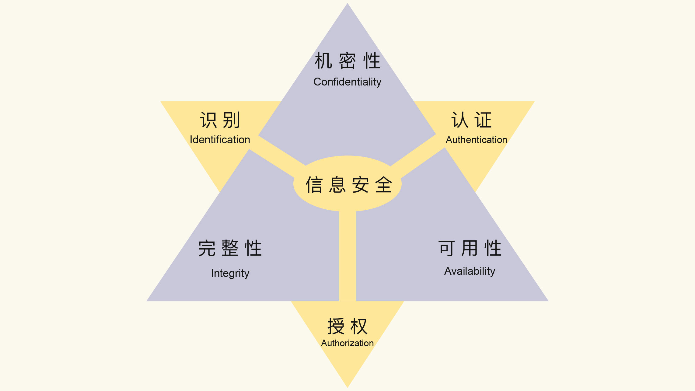 - 信息的机密性、完整性、可用性。这三个需求解决了信息安全的基本问题:信息怎么能够完整地、秘密地传递出去、接收进来?