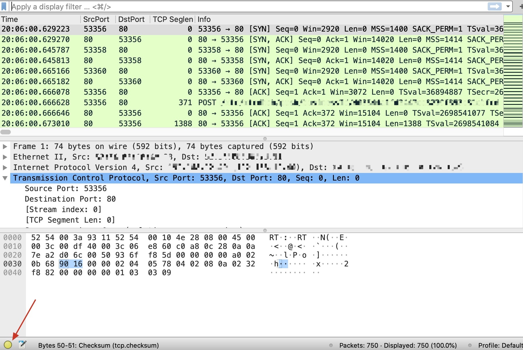 我们打开绕过LB的压测的抓包文件,在[第7讲]中,我提到过利用Expert Information(专家信息)来展开排查的小技巧。那么这里也是如此。