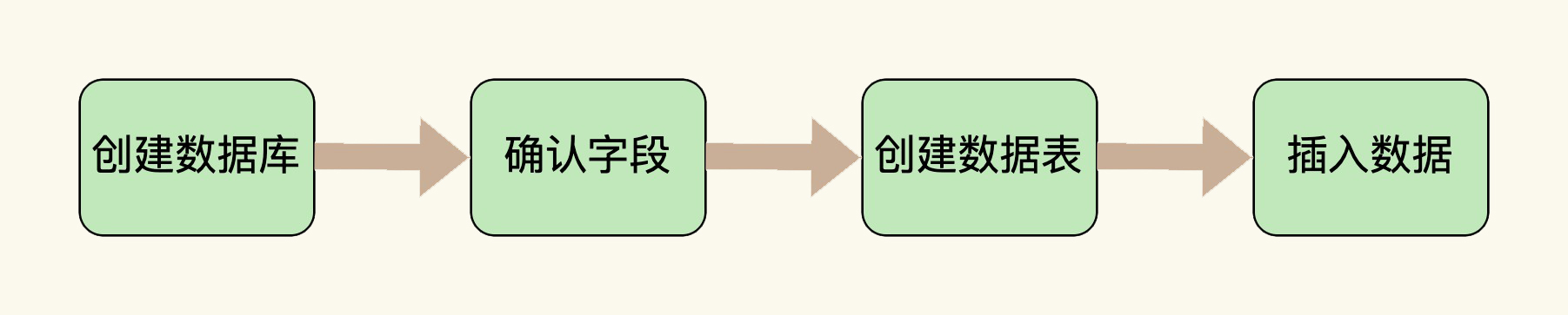 在MySQL中,一个完整的数据存储过程总共有4步,分别是创建数据库、确认字段、创建数据表、插入数据。