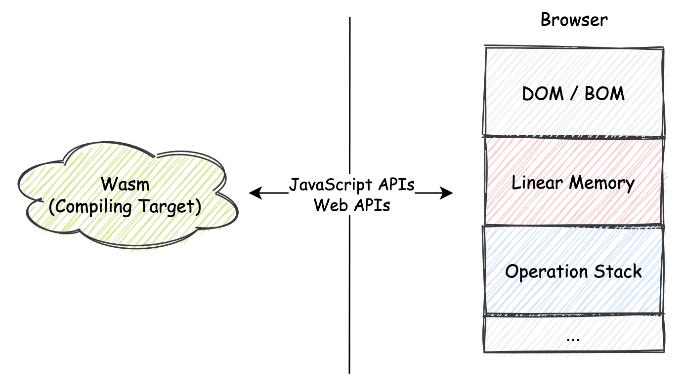 而对于复杂数据类型的传递,则需要通过 Wasm 线性内存段进行中转。不仅如此,对于诸如 JavaScript 引擎等宿主环境中的“不透明数据“,我们也无法直接在 Wasm 模块中使用。而这便是 MVP 标准暂时所欠缺的部分。