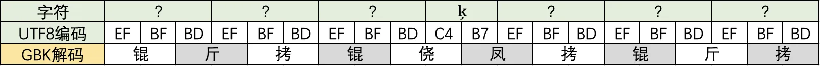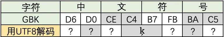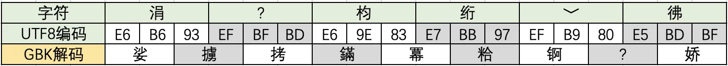 类似的,如果原始数据使用了UTF8编码,但错误地使用了GBK来解码,就会出现这种情况。
