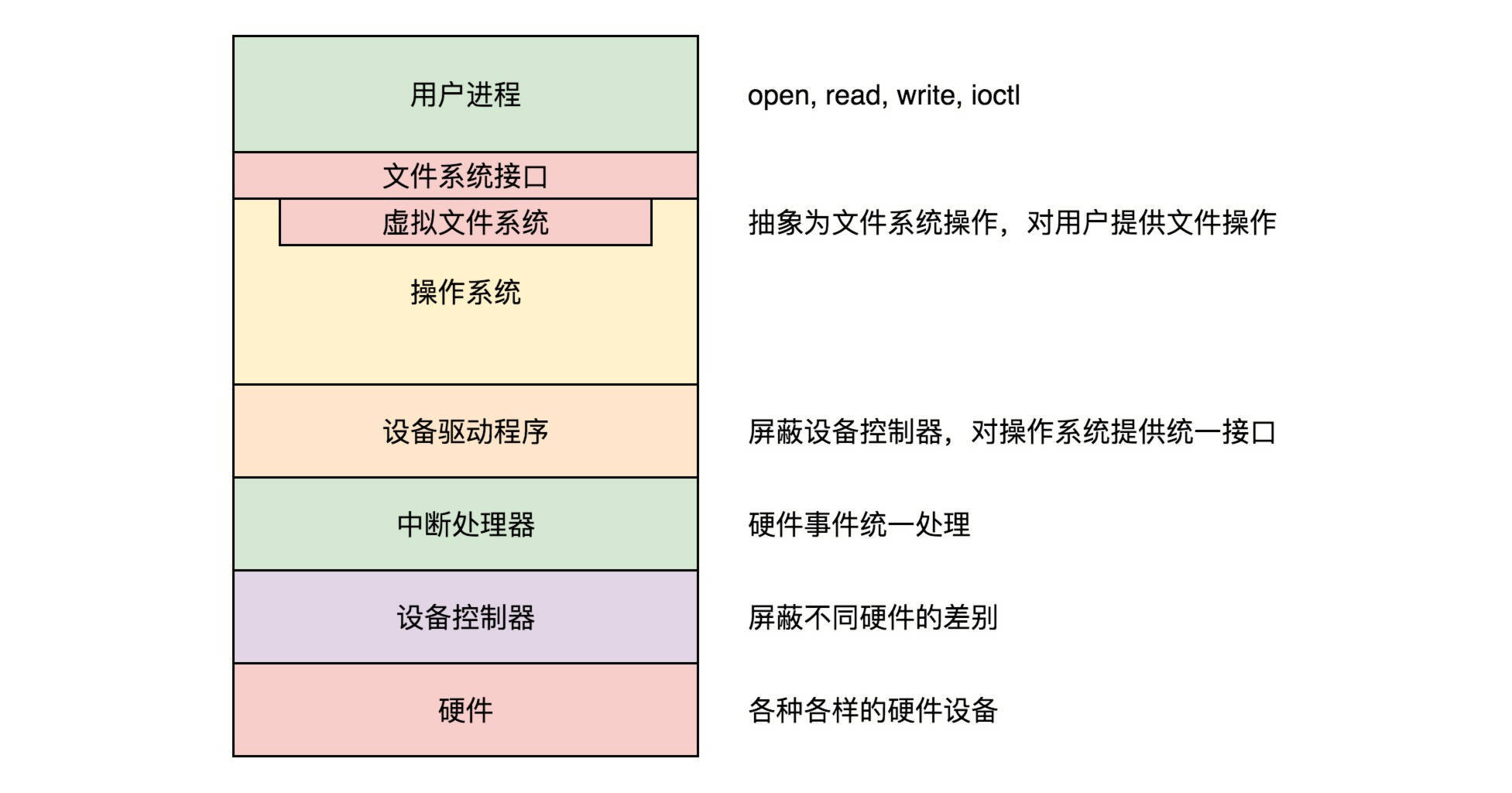虽然代理商机制能够帮我们屏蔽很多设备的细节,但是从上面的描述我们可以看出,由于每种设备的控制器的寄存器、缓冲区等使用模式,指令都不同,所以对于操作系统这家公司来讲,需要有个部门专门对接代理商,向其他部门屏蔽代理商的差异,类似公司的渠道管理部门。
