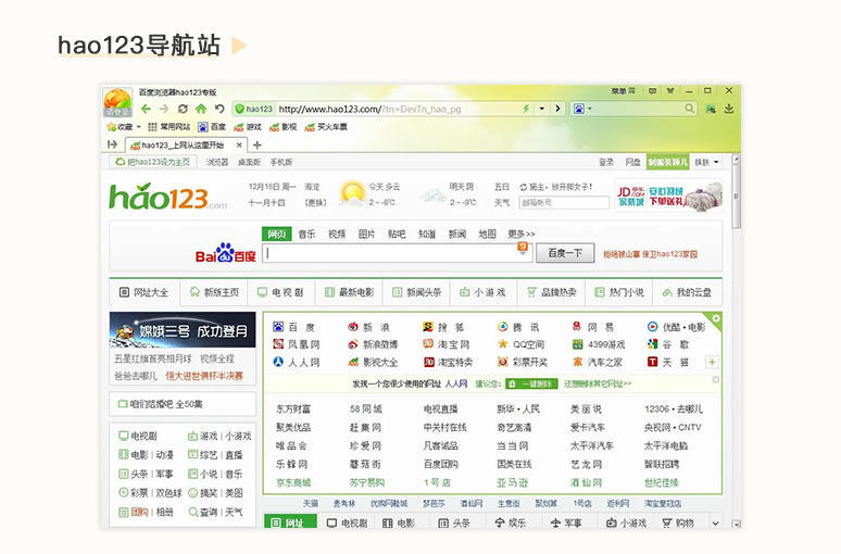 除了内容护城河的打造,百度在用户推广方面也比谷歌更加落地。总结下来有两个特色,一个是收购hao123,另一个则是覆盖网吧渠道。