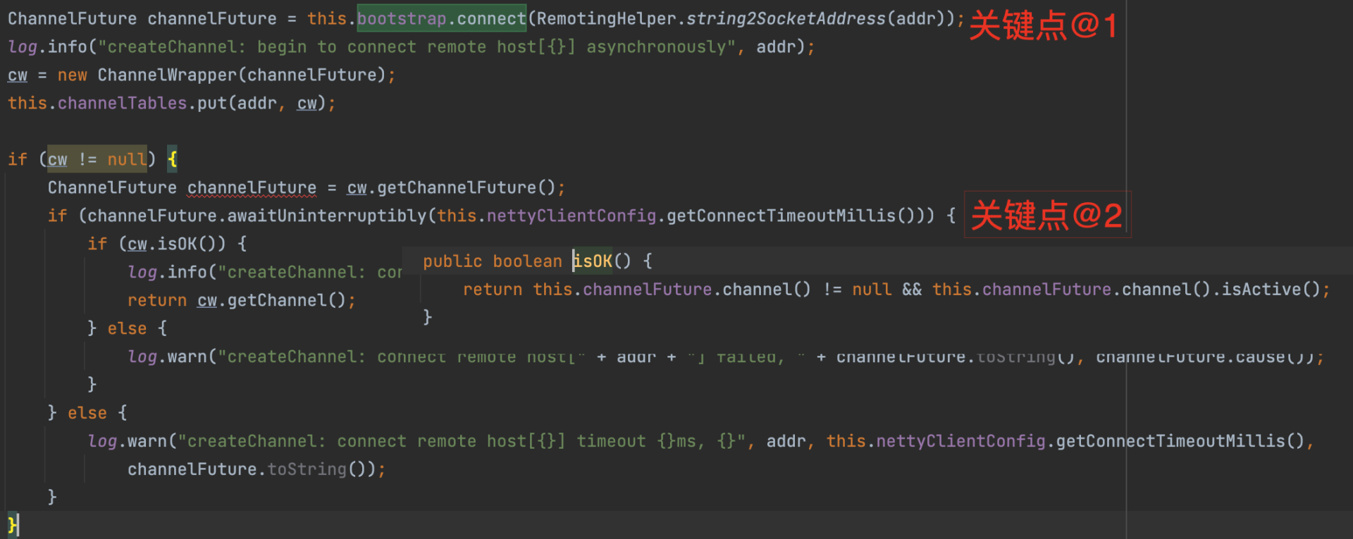 再来看一下客户端如何创建连接,其代码片段如下: