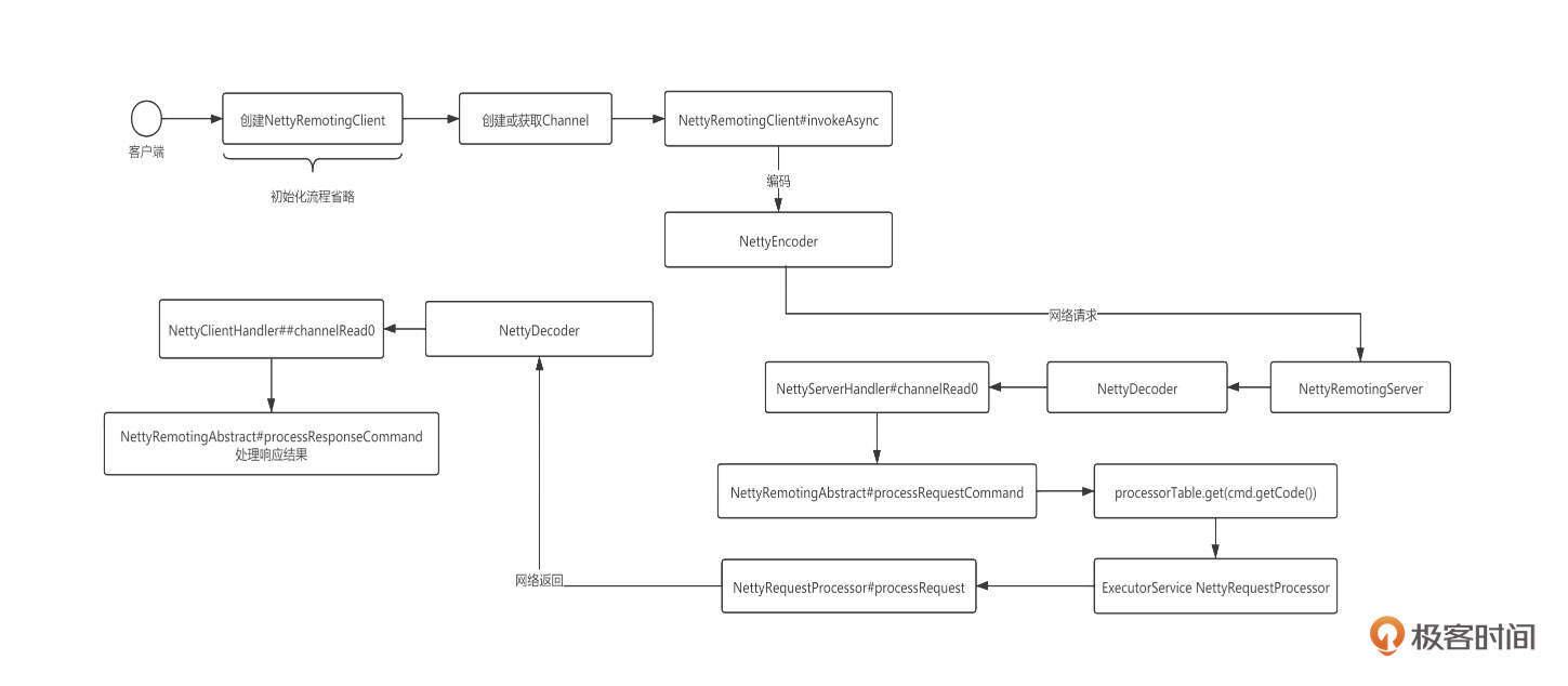 在深入RocketMQ网络层具体实践之前,我们先来看一下RocketMQ的网络交互流程: