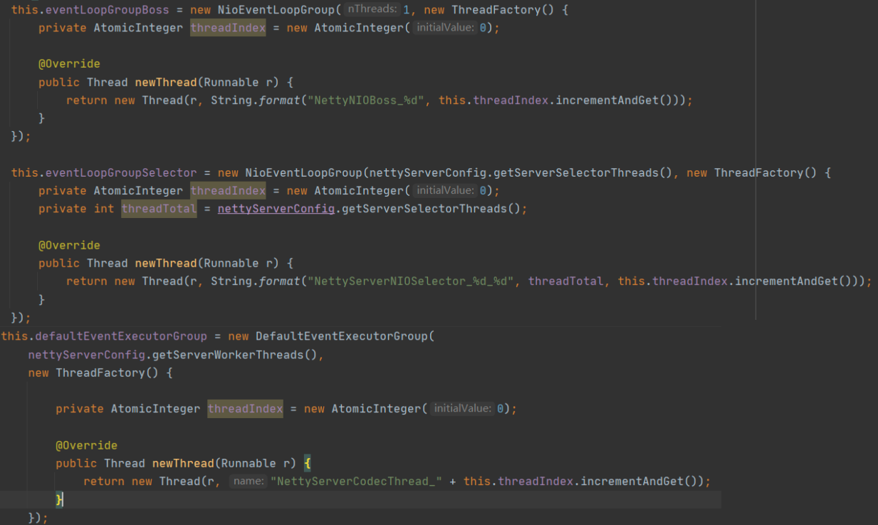 - defaultEventExecutorGroup线程组,在Netty中,可以为编解码等事件处理器单独指定一个线程池,从而使IO线程只负责数据的读取与写入。