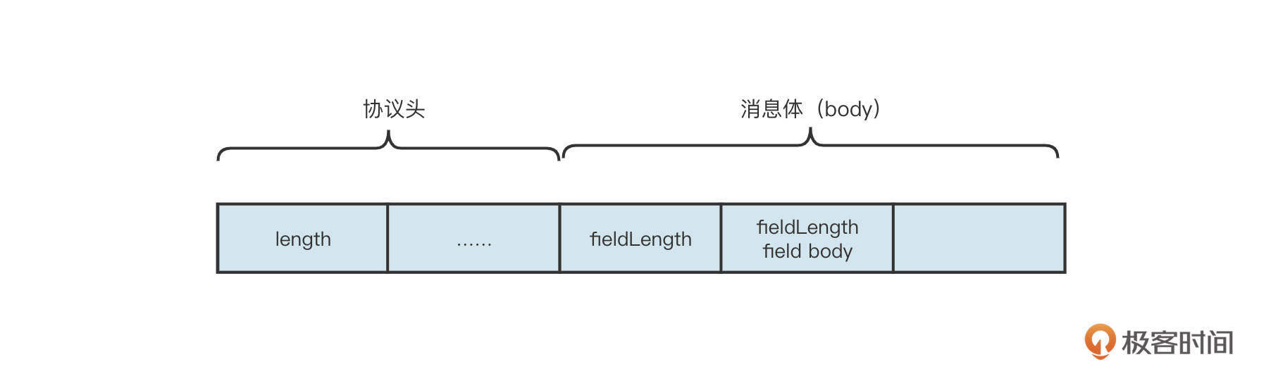 为了更直观地给你展示,我直接以一个简单的 RPC 通信场景为例,实现类似Dubbo服务远程服务调用,通信协议设计如下图所示:
