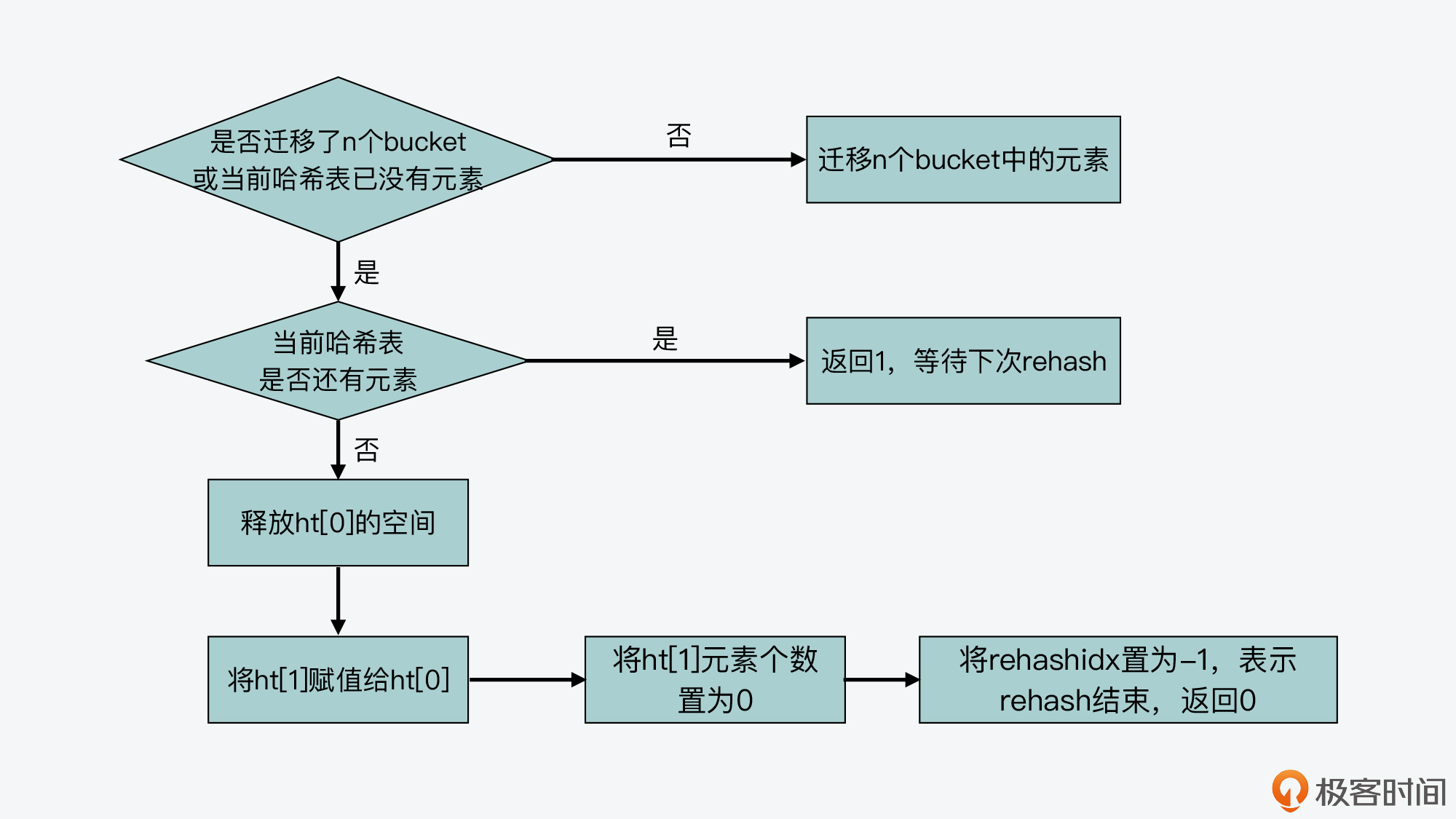 我画了下面这张图,展示了dictRehash的主要执行流程,你可以看下。