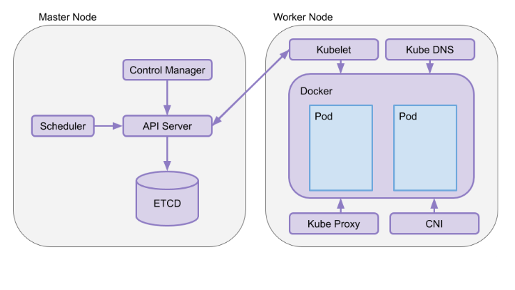 图中, Kube DNS负责为整个集群提供DNS服务;CNI是Container Network Interface的一个标准的通用接口,用于连接容器管理系统和网络插件。