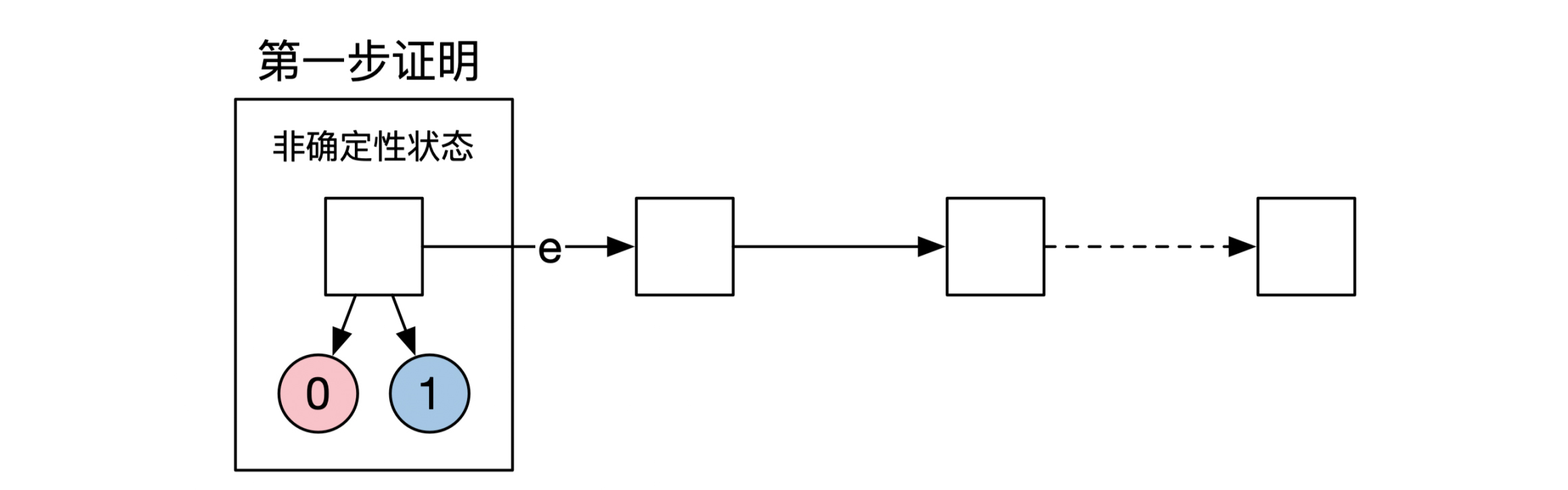 好,我们终于可以开始证明了。这里需要用到第一步的非确定性初始状态。