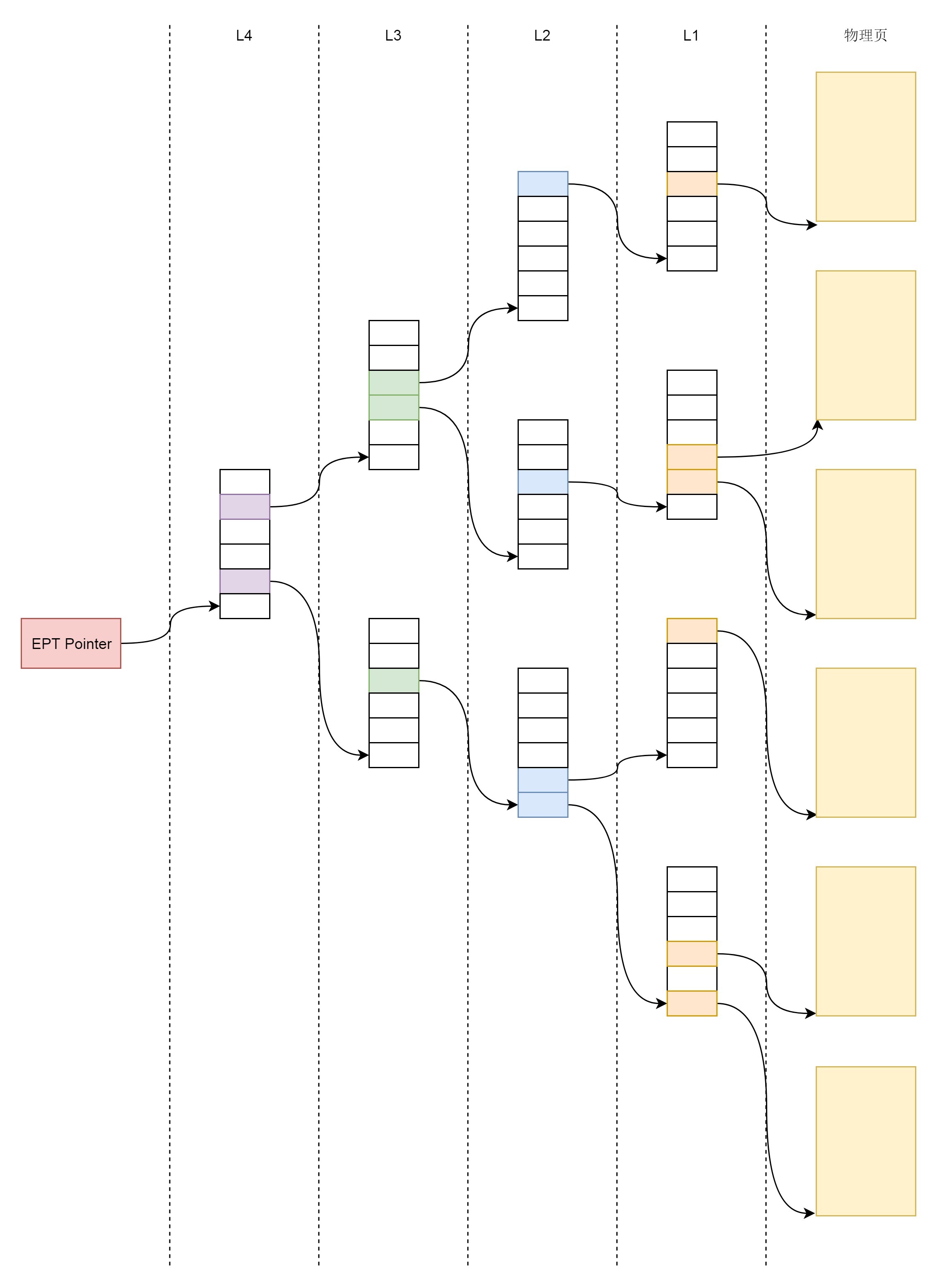 EPT的页表结构也是分为四层,EPT Pointer (EPTP)指向PML4的首地址。