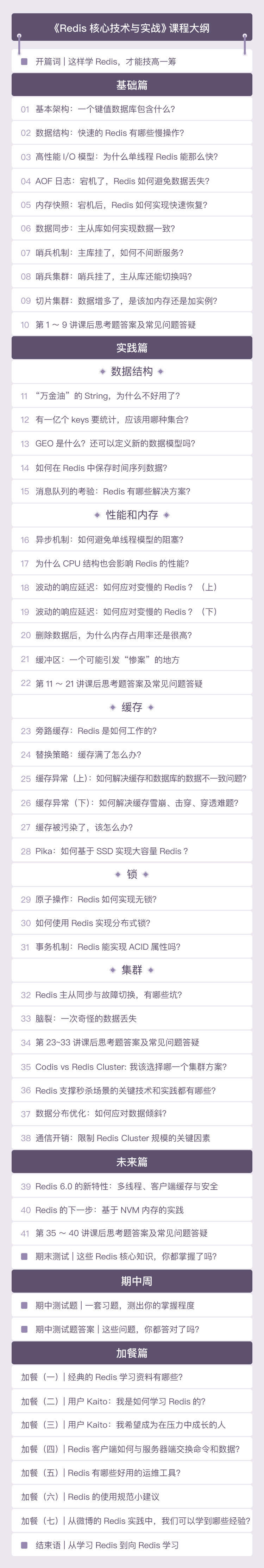 随着这些深入的研究、实战操作、案例积累,我拥有了一套从原理到实战的Redis知识总结。这一次,我想把我多年积累的经验分享给你。