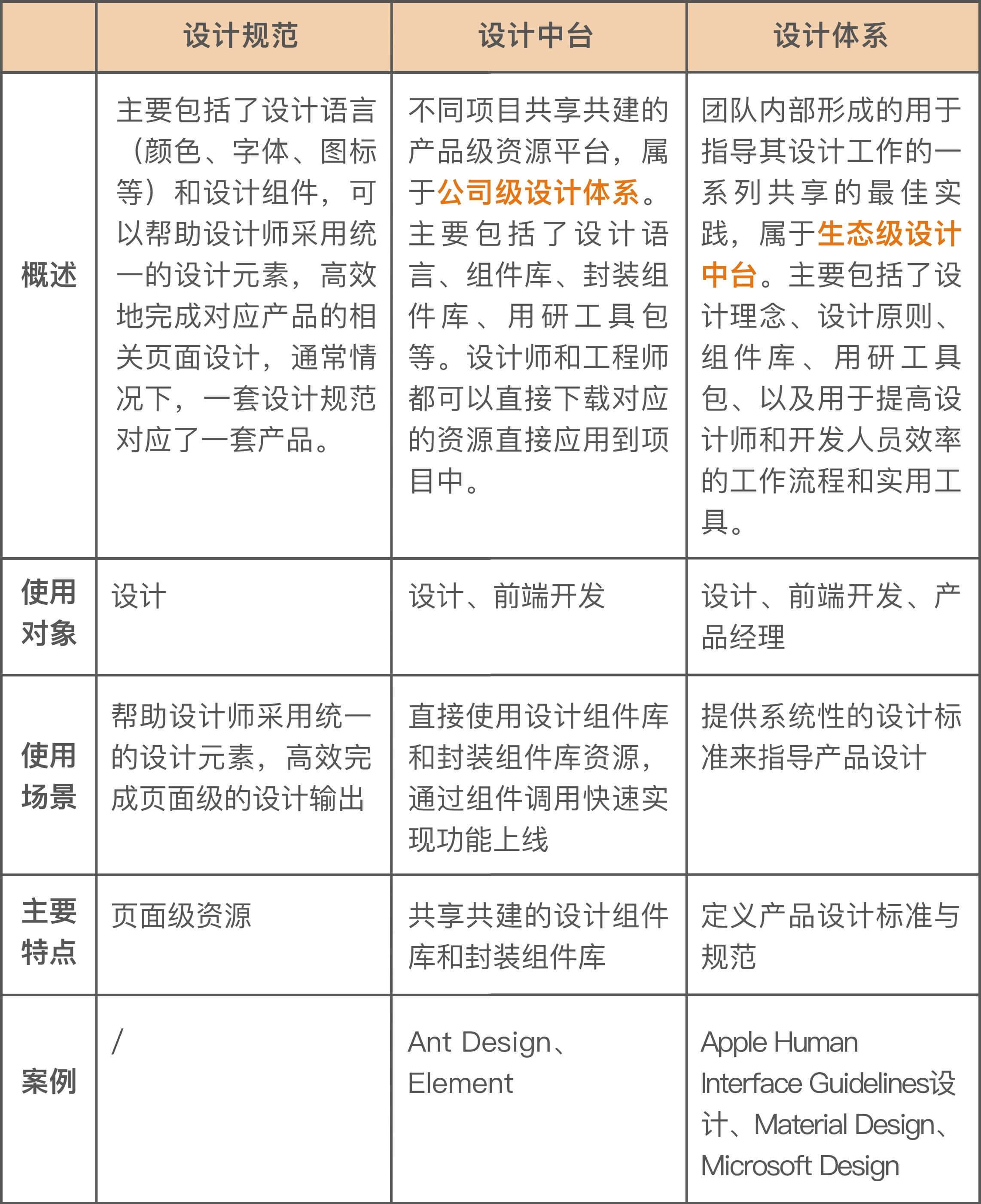 首先,我们来了解一下设计规范、设计中台以及设计体系之间的联系与差异。