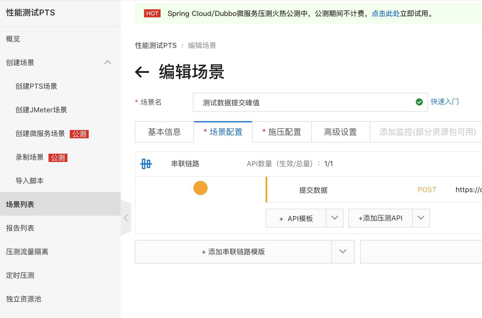 那么,关于云服务化的性能测试工具,这里我给你介绍一个典型的代表:阿里云的PTS。