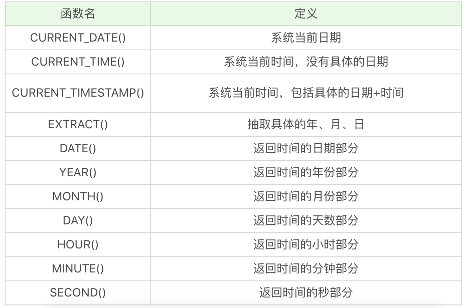 日期函数是对数据表中的日期进行处理,常用的函数包括: