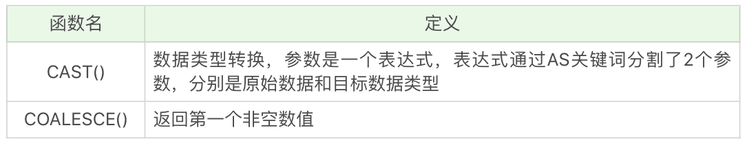 转换函数可以转换数据之间的类型,常用的函数如下表所示: