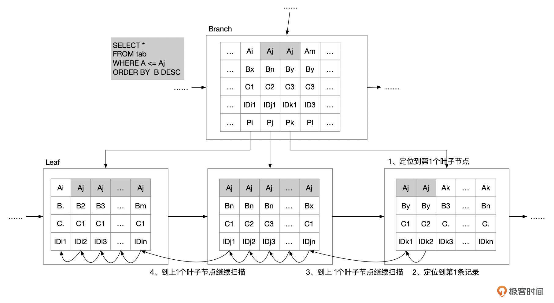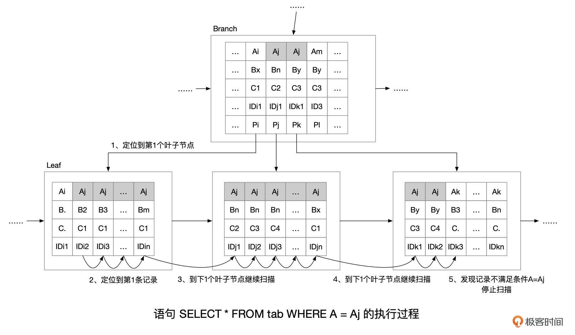 - 如果获取到的记录不满足索引条件(where A = Aj),则说明没有更多的数据了,停止扫描。