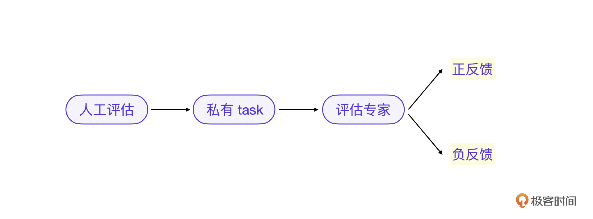 如果是评估专家来做评估,则是大模型替代人类评估判断,得出评分1还是0。私有task传统的方式是用语义距离等算法来判断评分 1 还是 0,如果将语义距离算法改为评估专家算法,还是判断评分1还是0。
