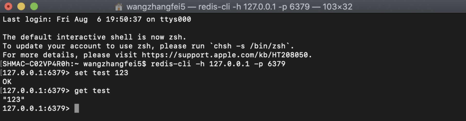 这时新建一个终端窗口,模拟客户端连接Redis服务,如下图所示,可以set一个值,并get查询出来,说明Redis也正常安装成功并可以使用。