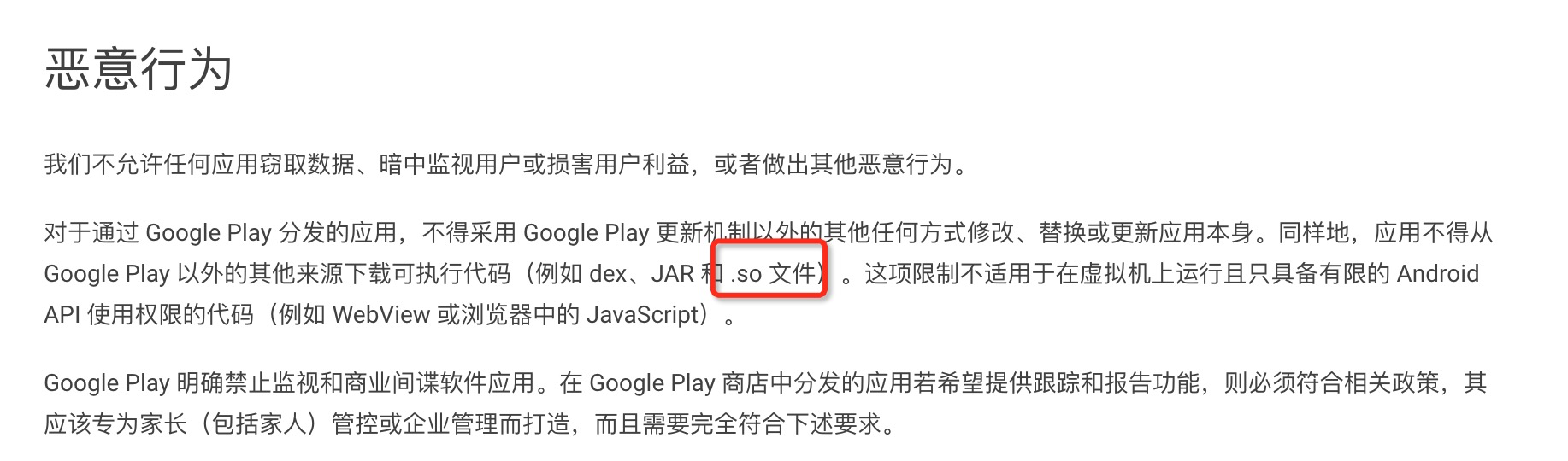 从《从Flutter的编译模式》一文中,我们可以通过flutter build apk --build-shared-library将Dart代码编译成app.so。无论是libflutter.so,还是app.so(其实vm_*、isolate_*也是可执行文件)的动态更新,都违反了Google Play的政策。