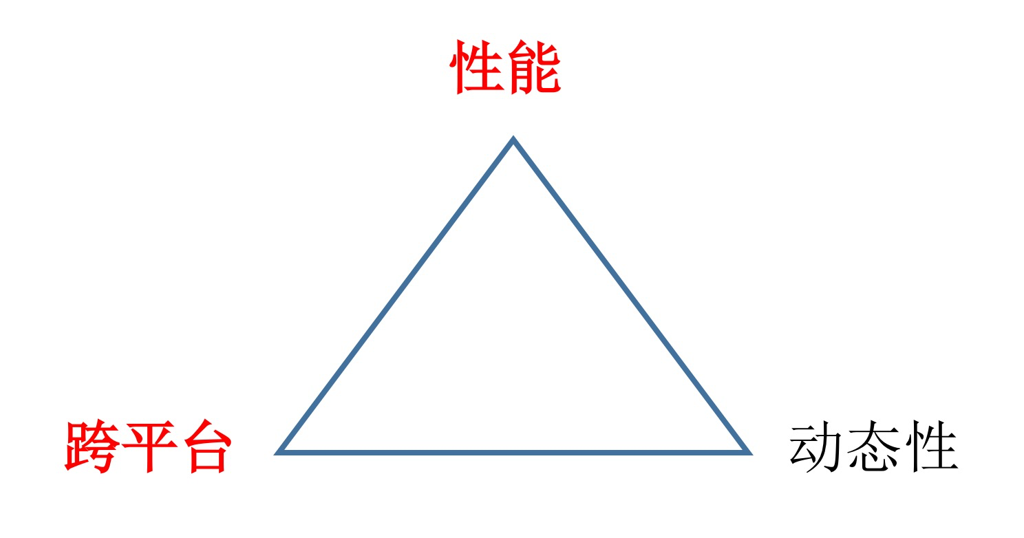 在性能、跨平台、动态性这个“铁三角”中,我们不能同时将三个都做到最优。如果Flutter在性能、跨平台和动态性都比浏览器更好,那就不会出现Flutter这个框架了,而是成为Chromium的一个跨时代版本。