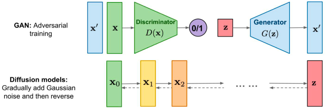 你可以参考后面的对比图,来理解扩散模型和GAN的原理。