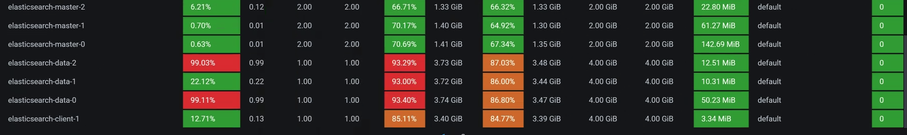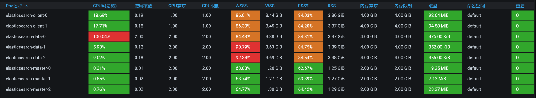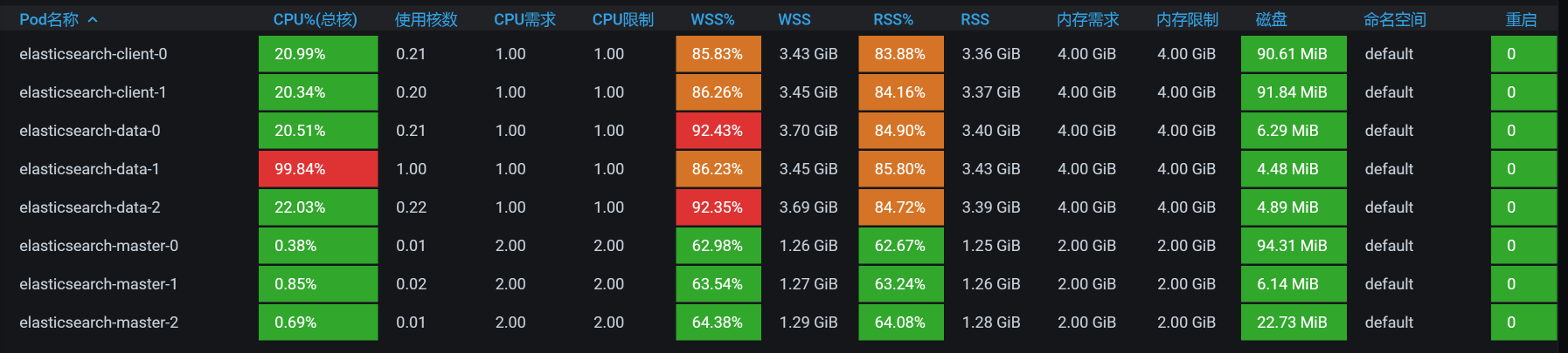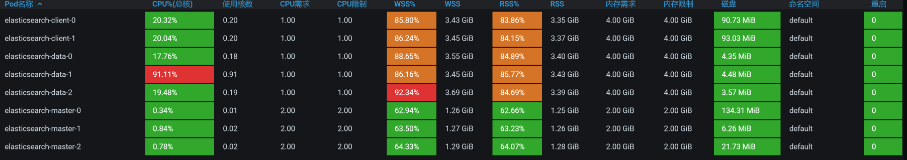 也就是说,ES data的每个POD都是配置了一颗CPU,难怪CPU使用率动不动就红了。