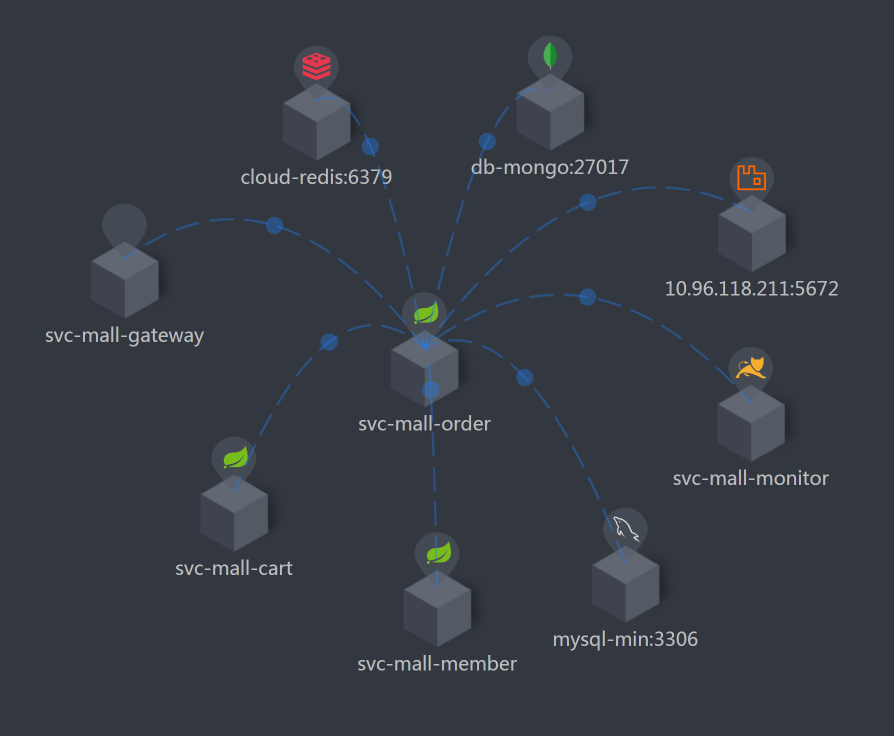 Order服务是这个接口的核心,因此,你可以看到我把Order相关的服务都筛选了出来,这样我们就能很清楚地知道它连接了哪些东西。
