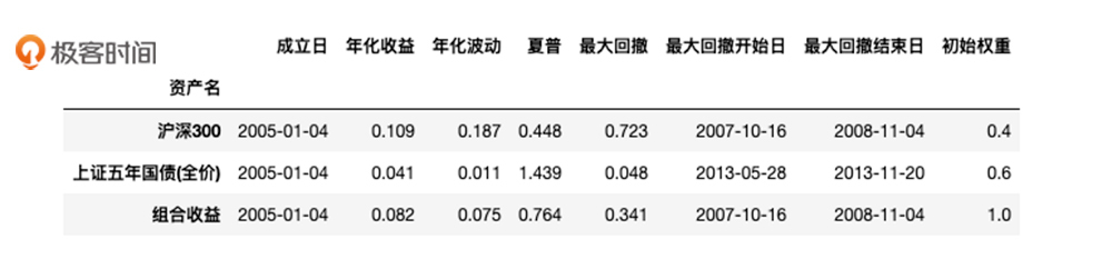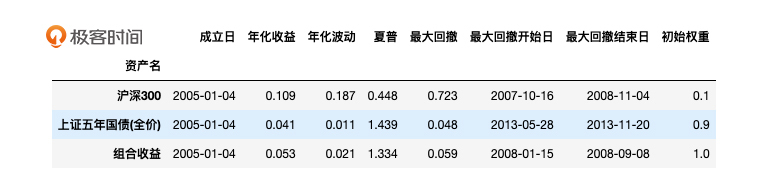到这里,我们的这一讲就接近尾声了。为了方便你对比这一讲提到的所有组合,我把它们的业绩指标全部总结到了下面的表格里。