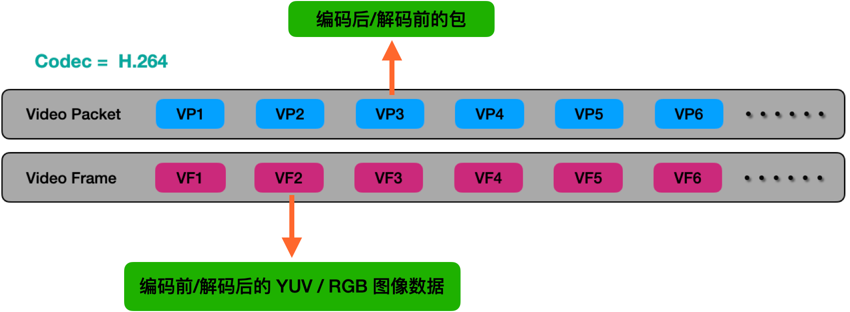 关于音视频封装容器、音视频流、音视频包、音视频帧之间对应的关系,我们用图片来表示会更直观一些。