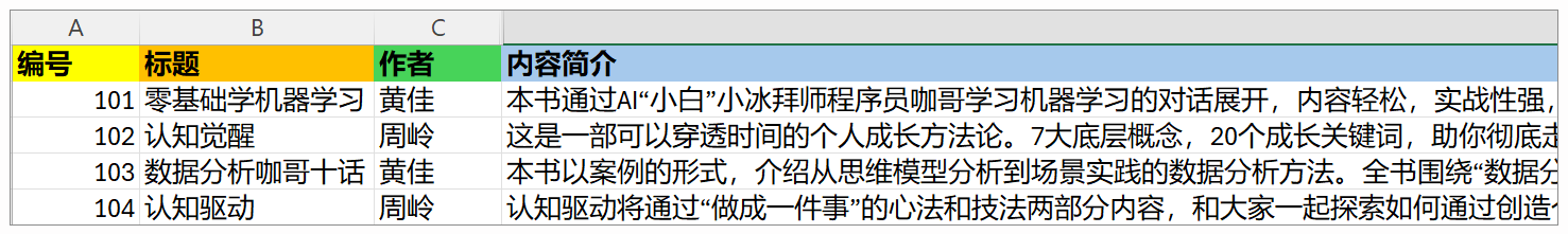 首先,我为你准备了一个非常简单的图书数据集。针对这个数据集,我们要构建一个基于大语言模型和向量嵌入的推荐系统。