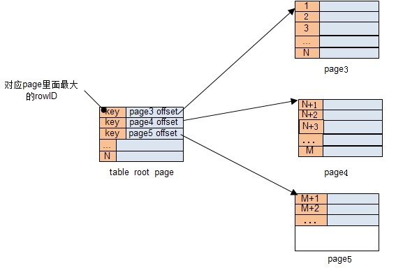 每个页永远只存放一个表或者一组索引的数据,即不可能同一个页存放多个表或索引的数据,表在整个DB文件的第一个页就是这棵B树的根页。继续以上图为例,如果想查询rowID为N+2的数据,我们首先要从sqlite_master查找出table的root page的位置,然后读取root page、page4这两个页,所以一共会需要3次I/O。