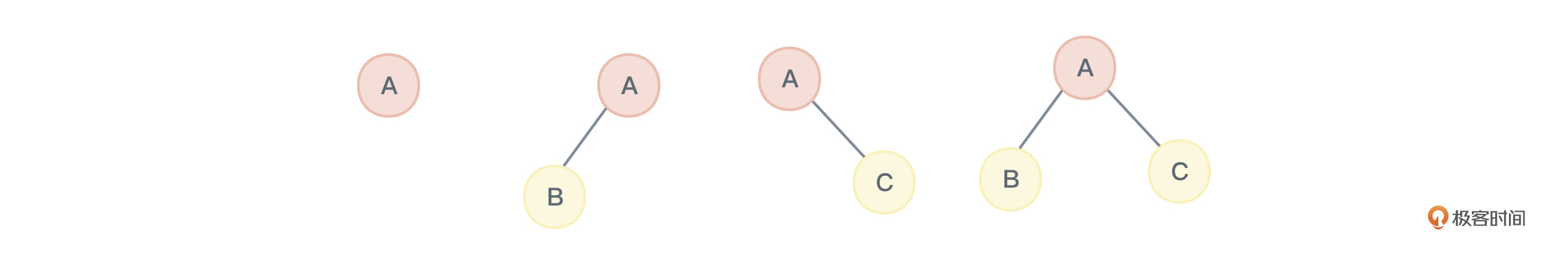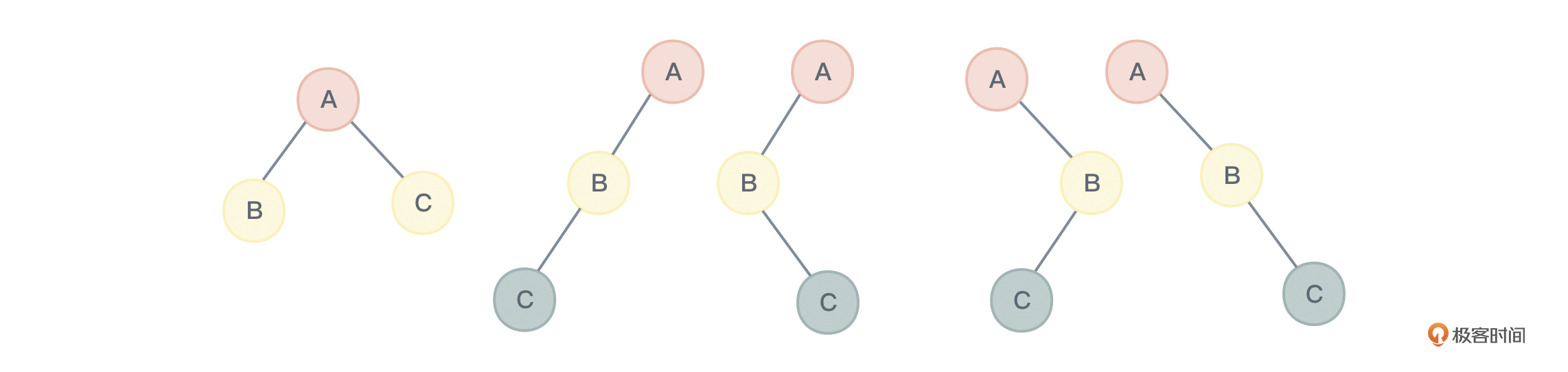 你可以思考一下,有三个节点的二叉树会有几种形态呢?答案是有5种形态,如图4所示,你答对了吗?