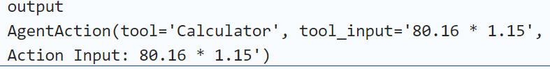 这个输出显示,模型告诉自己,“我需要计算新的Price,在搜索结果的基础上加价15%”,并确定Action为计算器,输入计算器工具的指令为80.16*1.15。这是一个非常有逻辑性的思考。