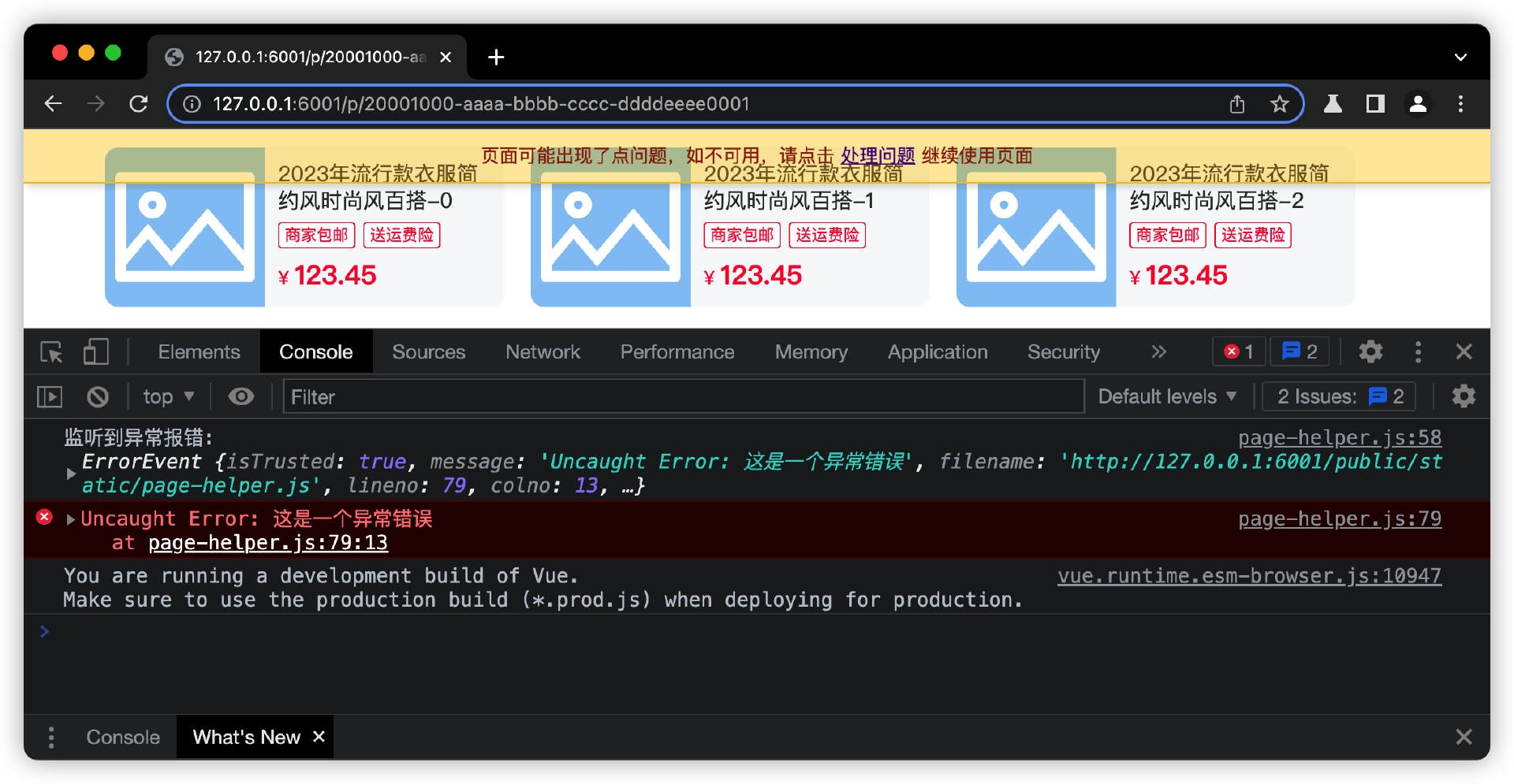 假设我们发布了搭建的页面给外部客户使用,如果页面出现问题,一开始只有少数客户使用功能受到影响,后来越来越多客户使用不了页面,就可能演变成生产故障。这类问题场景的特点就是“已上产线的页面”“客户功能不可用”和“影响面从小变大”。