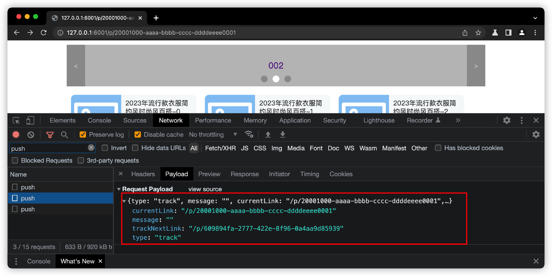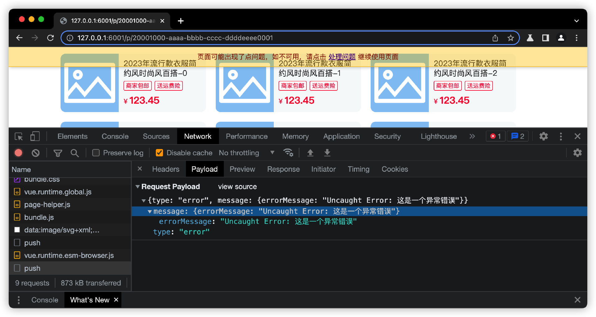 我在前台页面上触发一个错误,就会发起一个日志请求。
