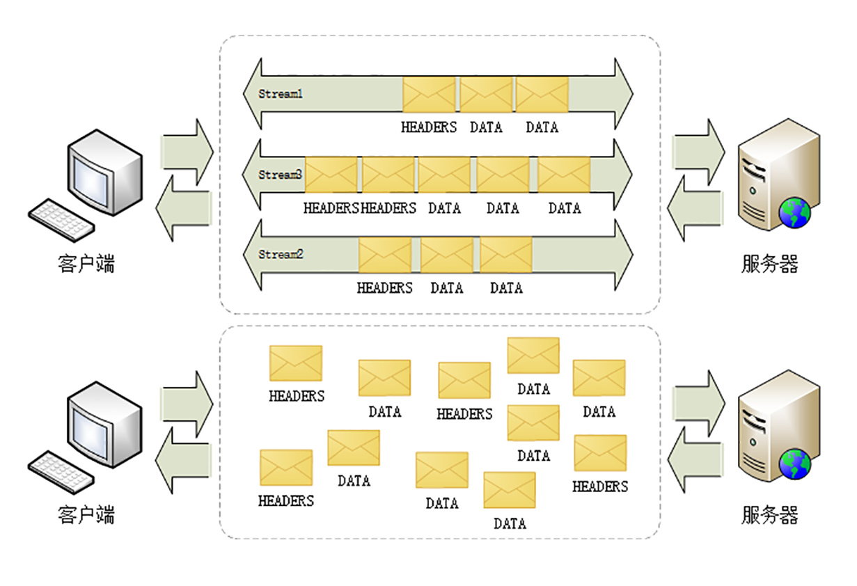 在“流”的层面上看,消息是一些有序的“帧”序列,而在“连接”的层面上看,消息却是乱序收发的“帧”。多个请求/响应之间没有了顺序关系,不需要排队等待,也就不会再出现“队头阻塞”问题,降低了延迟,大幅度提高了连接的利用率。