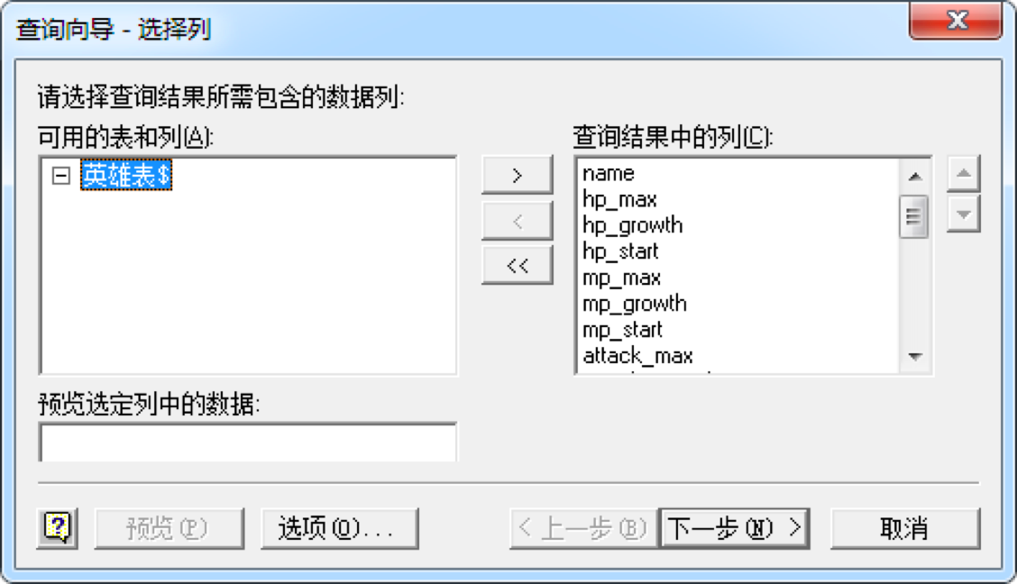 当我们选择“将数据返回到Microsoft Excel”后,接下来的操作和使用OLE DB接口方式导入数据一样,可以对显示方式以及属性进行调整: