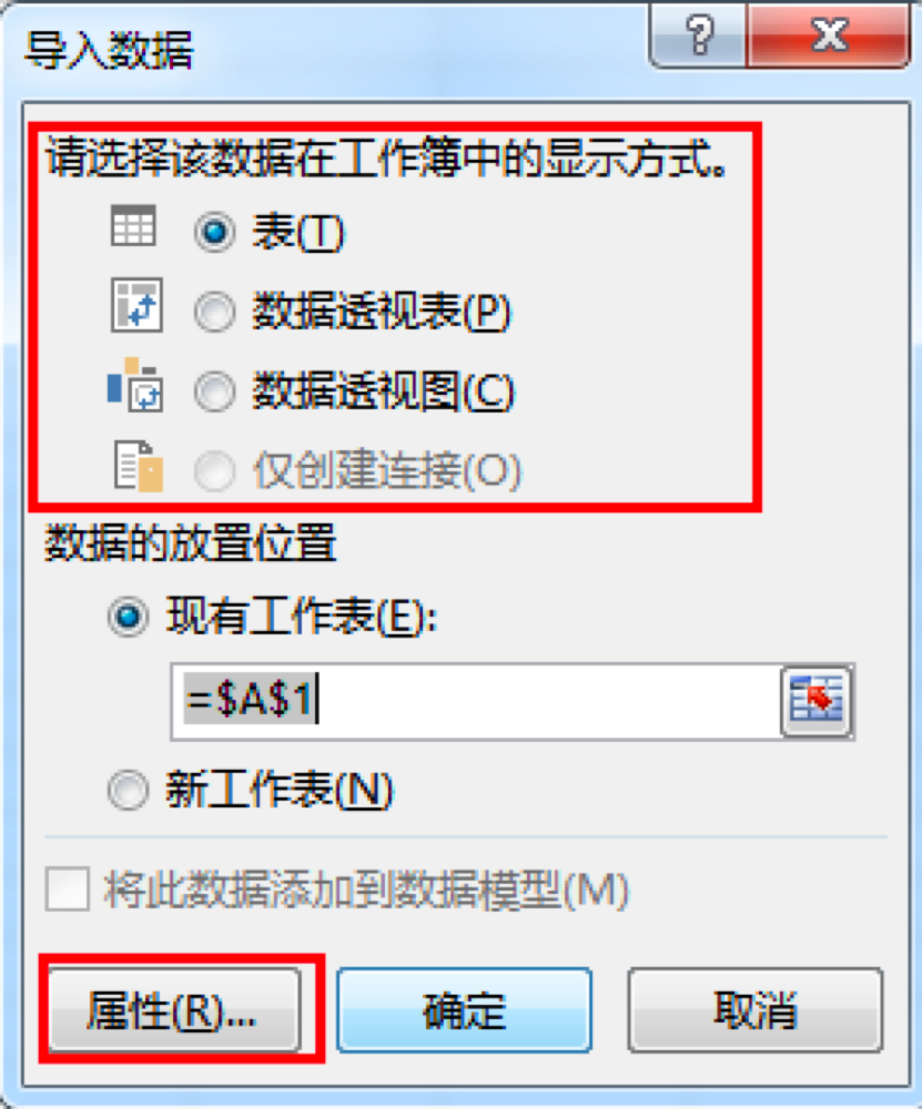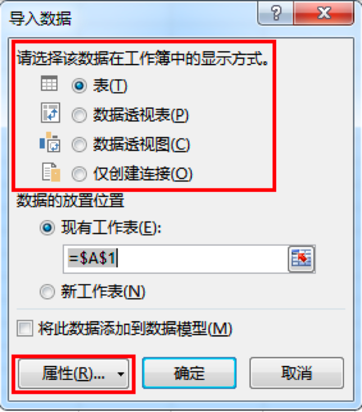 这里,我们同样选择显示方式为“表”,导入全部的数据到指定的$A$1(代表A1单元格),同样会看到如下的结果: