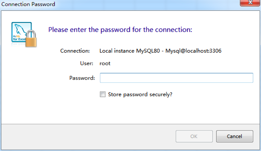 第一步,连接MySQL。打开一个新的Excel文件的时候,会在“数据”面板中看到MySQL for Excel的插件,点击后可以打开MySQL的连接界面,如下: