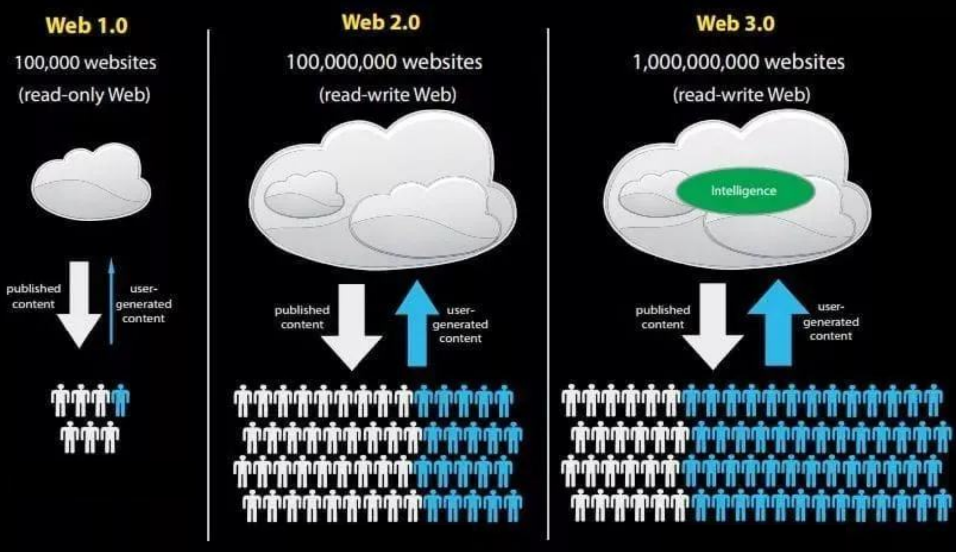要了解广告头部玩家用户互动模式的变化,我们首先要对Web 1.0、Web 2.0、Web 3.0的概念有所了解。