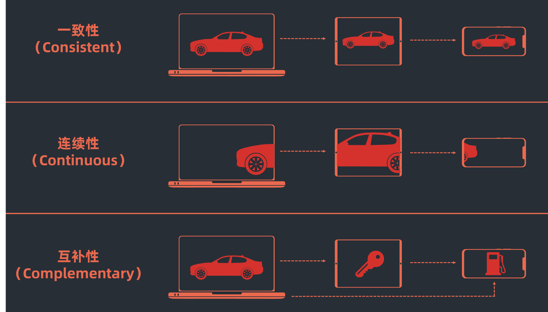 **一致性说的是业务需要根据设备的自身属性(主要是屏幕尺寸、形状、以及交互模式差别)进行相应的调整和映射,确保整体体验的一致性。**响应式布局就是典型的一致性运用。