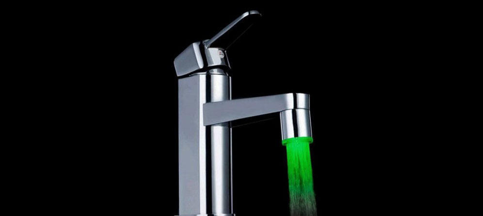 举个例子,用户洗手的时候就不要非得用触觉通道让用户感知到烫,才赶紧旋转水龙头把水调冷,我们可以用下面的这种通过灯光色彩暗示水温状况的设计来提示用户,这就是通过视觉通道来传达本应该由触觉通道来感知的信息。