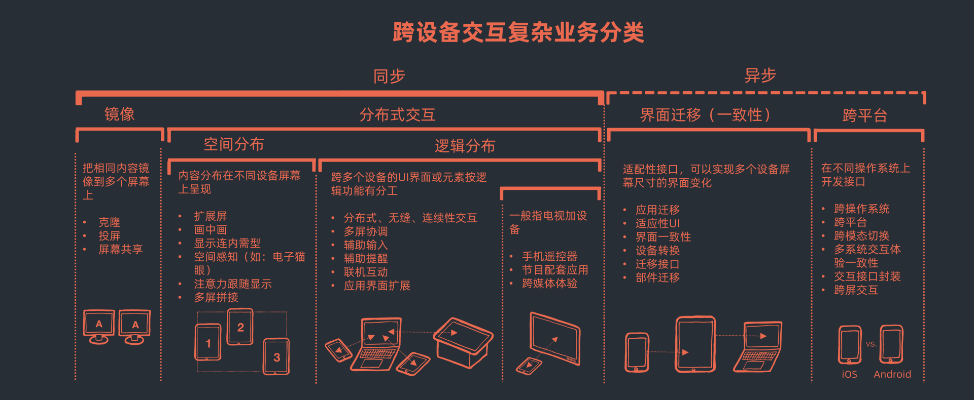 - 用户特点上,我们要考虑不同用户有不同的多设备使用习惯,可能存在多人对应多设备的情况。