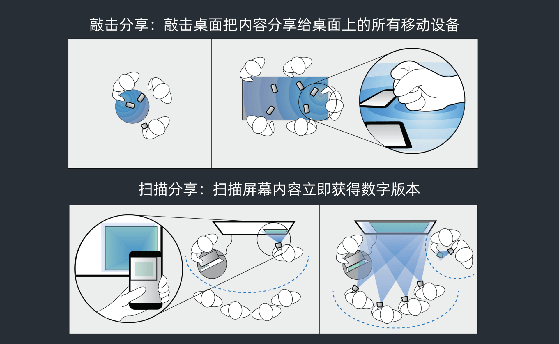 其实,关于内容共享的自然交互设计,你不必拘泥于以上情况,我下面再给你两个例子,你体会一下。实现连续性的技术有很多种,关键看你是否在体验设计上有足够的脑洞,能够利用技术找到自然的交互手段。