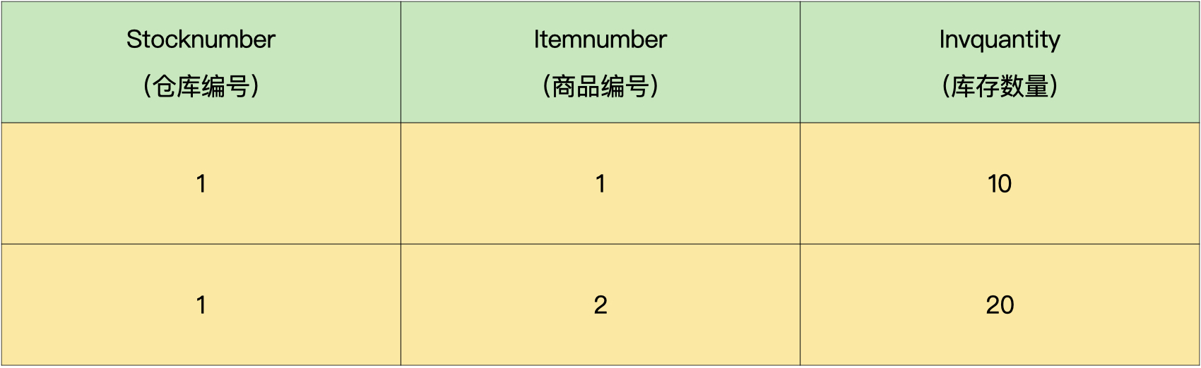 库存表: